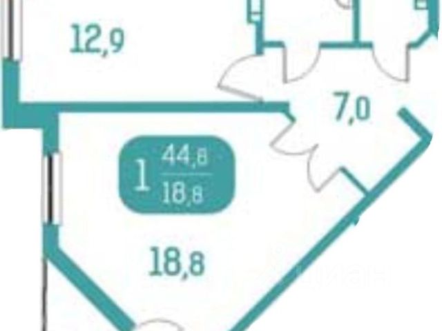 - Общая площадь 44.8 м2