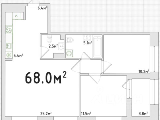 - Общая площадь: 68 м2