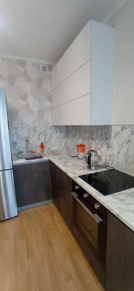 Продается уютная однокомнатная квартира с современным евро ремонтом. Просторная кухня оборудована стильной мебелью. Из кухни выход на застекленную лоджию с видом во двор, где расположена детская и спортивная площадки. Квартира находится на 5 этаже монолитного дома, построенного в 2009 году. В доме предусмотрен консьерж и пассажирский лифт, а также имеется подземная парковка. Санузел раздельный, выполнен в светлых тонах. Окна выходят на тихий двор, что обеспечивает спокойствие и комфорт. Просмотр по договоренности, ключи в агентстве.