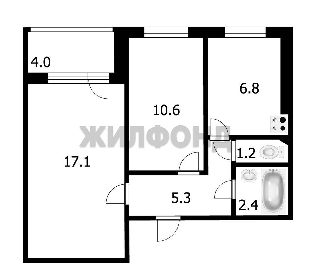 - Общая площадь 45.1 м2