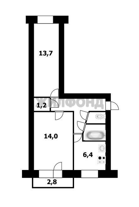 - Общая площадь: 43.6 м2