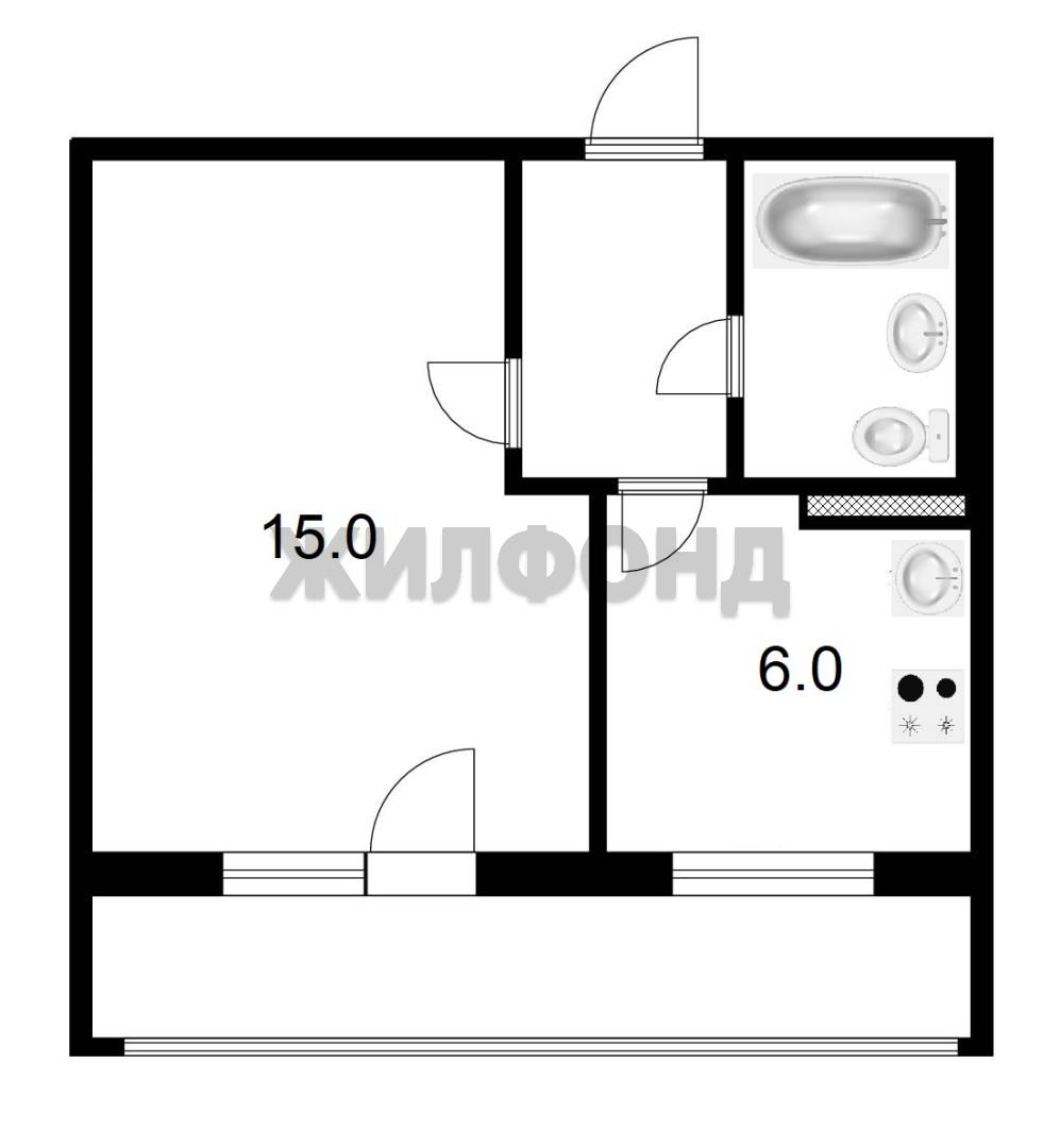 - Жилая площадь: 15 м2