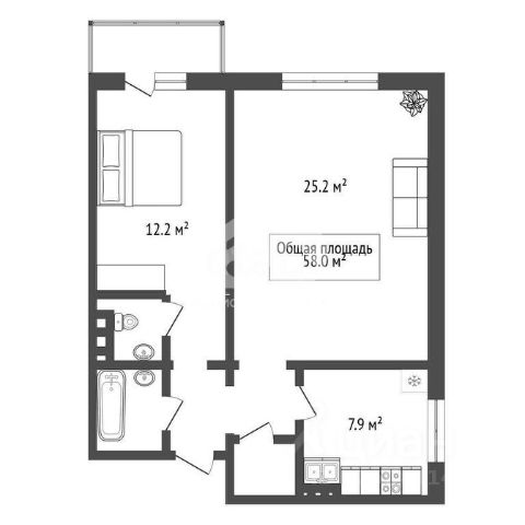 - Общая площадь: 64 м2