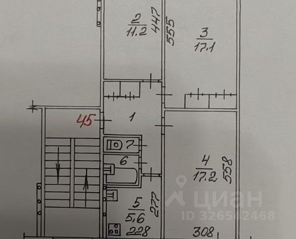 - Общая площадь: 61.7 м2