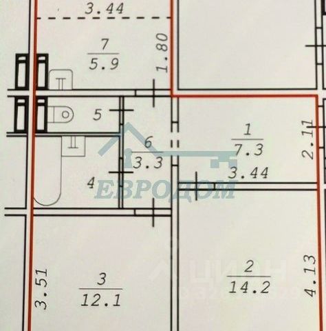 - Общая площадь 60.9 м2
