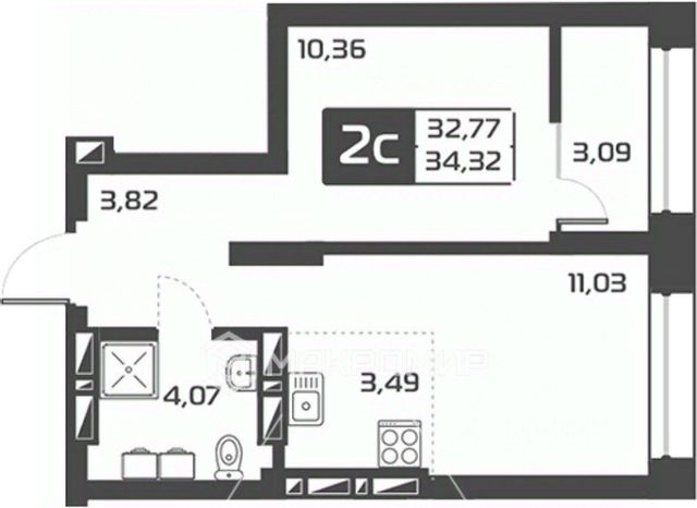 - Общая площадь: 34 м2