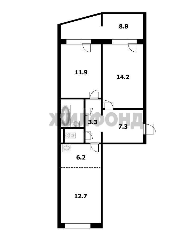 - Общая площадь: 60.8 м2