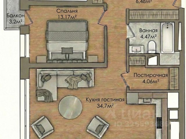 - Общая площадь: 69 м2