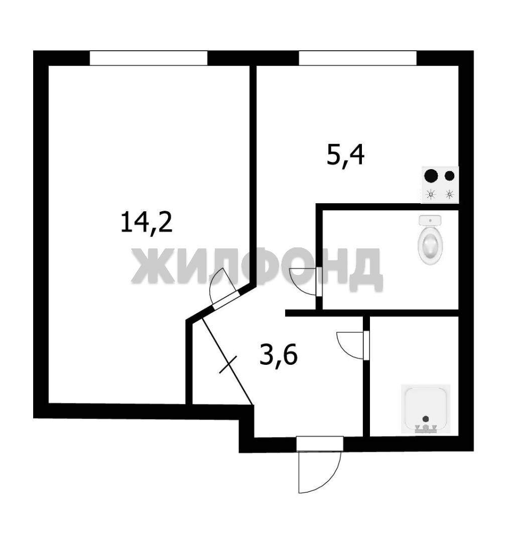 - Жилая площадь 14.2 м2