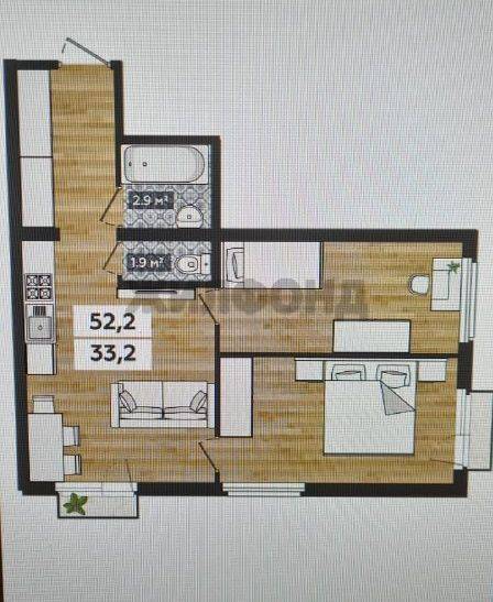 - Общая площадь 52.2 м2