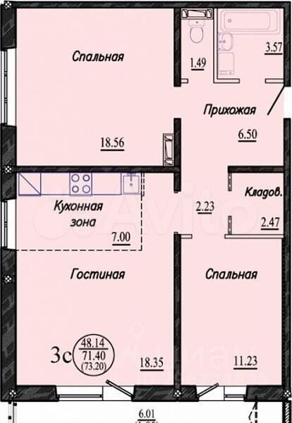 - Общая площадь: 71.9 м2