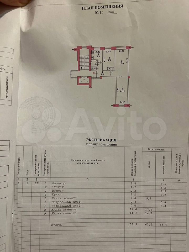 - Общая площадь: 56.3 м2
