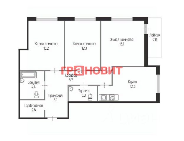 - Общая площадь: 72.5 м2