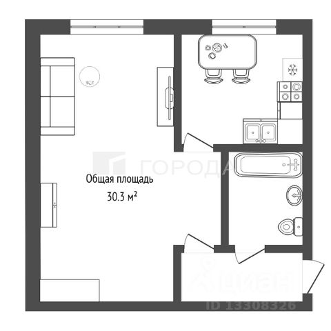 - Общая площадь: 30.3 м2