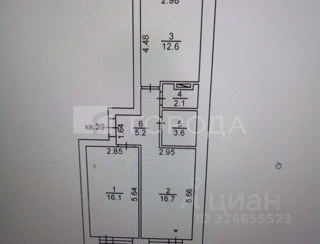 - Общая площадь: 56.3 м2