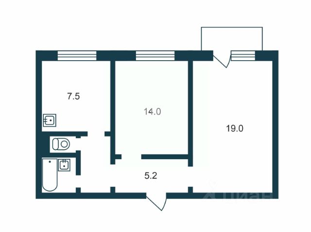 - Общая площадь: 52.8 м2