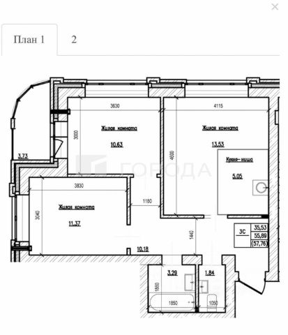 - Общая площадь 57.7 м2