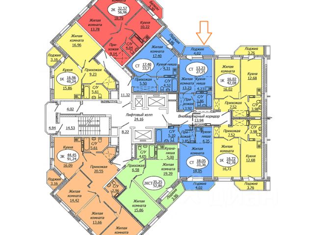 - Общая площадь: 24.3 м2