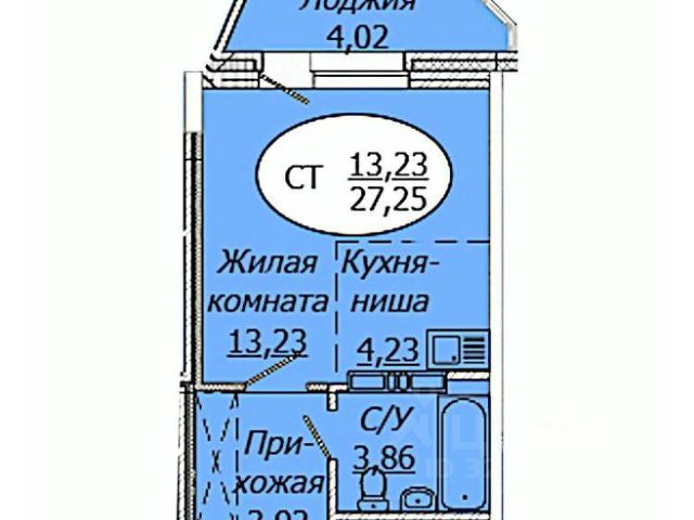 - Общая площадь 24.3 м2