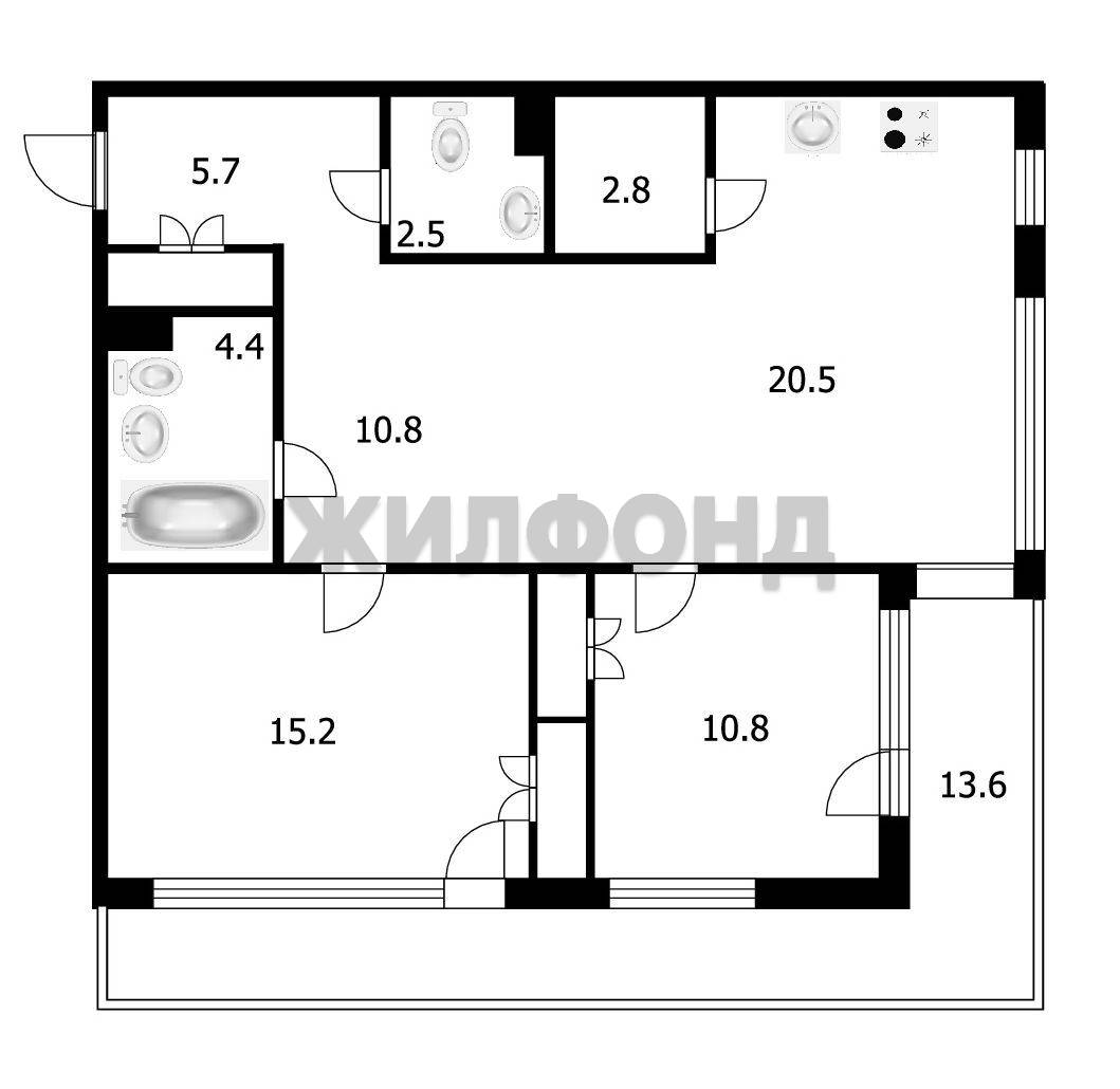 - Площадь кухни: 20.5 м2