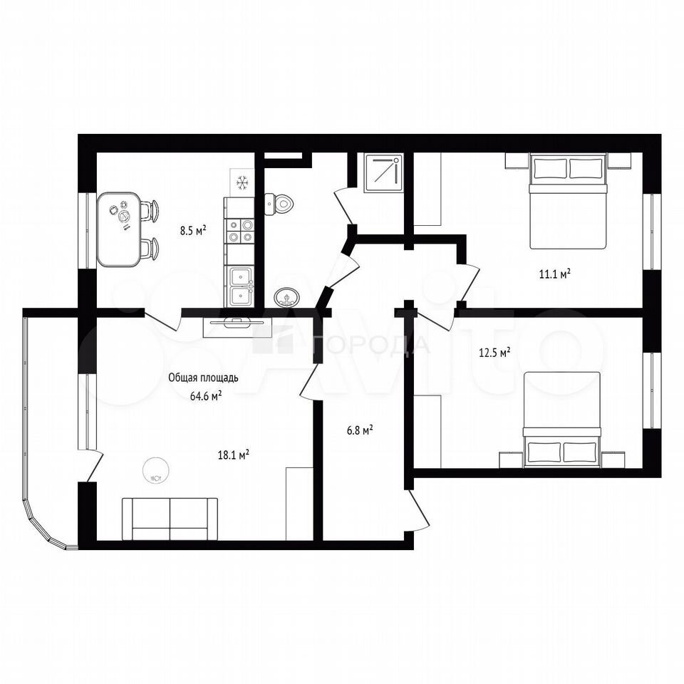 - Общая площадь 64.6 м2