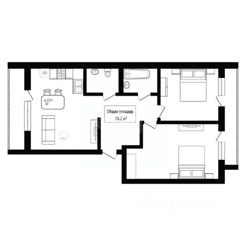 - Общая площадь: 76.2 м2