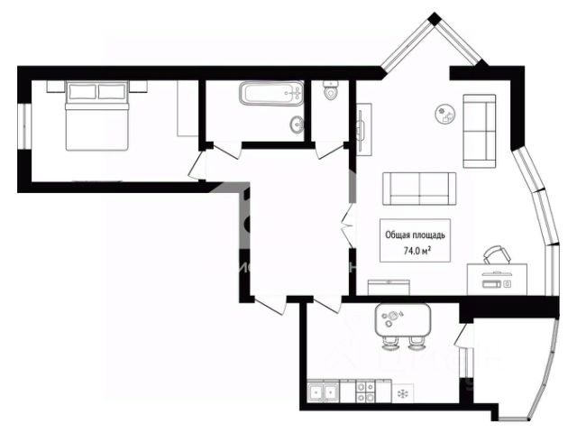 - Общая площадь 74 м2