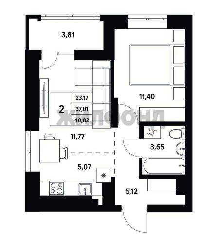 - Общая площадь: 37 м2