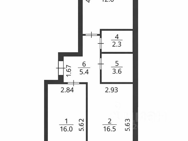 - Общая площадь: 56.4 м2