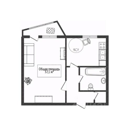 - Общая площадь: 37.1 м2