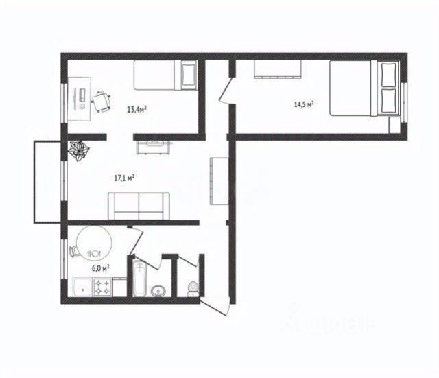 - Общая площадь: 62.9 м2