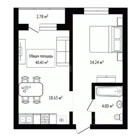 - Общая площадь 40.4 м2