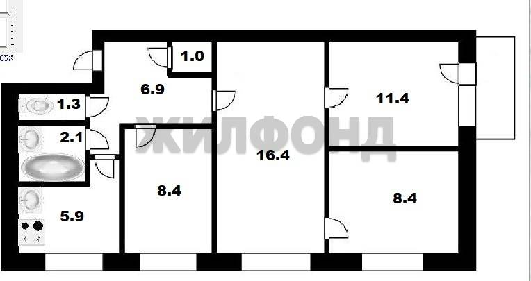 - Общая площадь: 61.8 м2