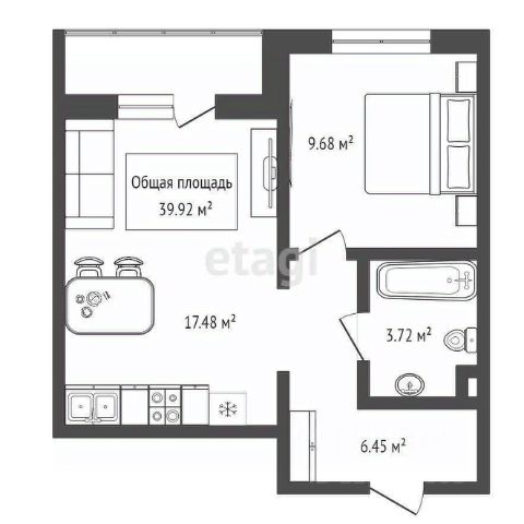 - Общая площадь 39.9 м2