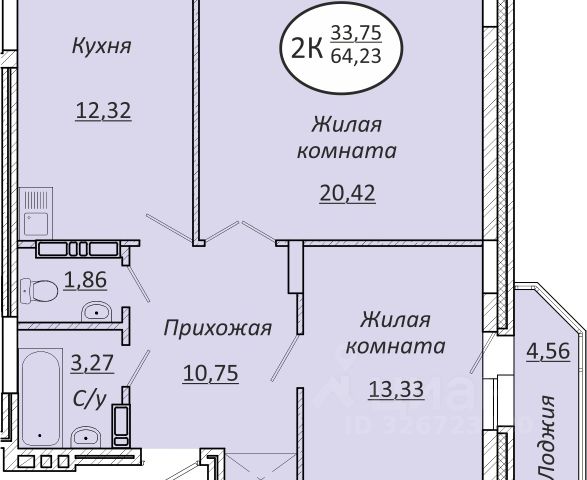 - Общая площадь 61.2 м2