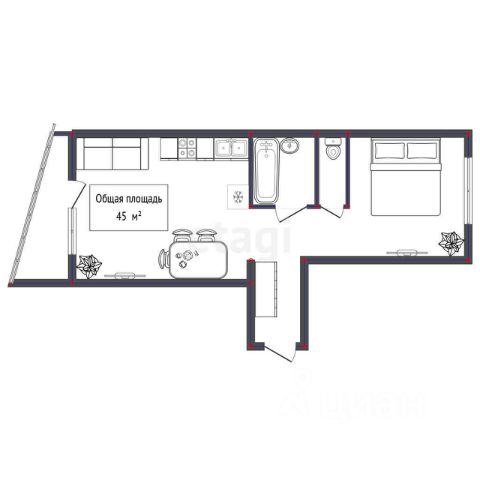 - Общая площадь 45 м2