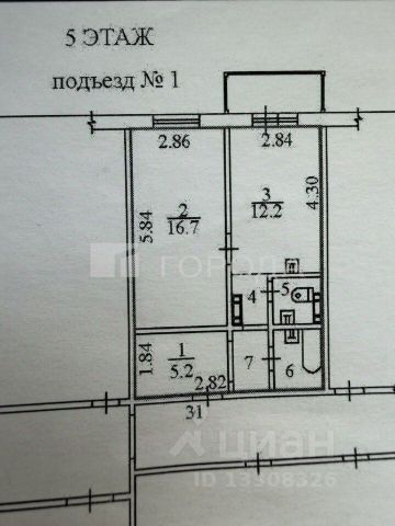 - Общая площадь: 42.5 м2