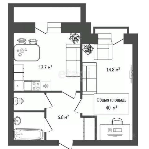 - Общая площадь: 40 м2