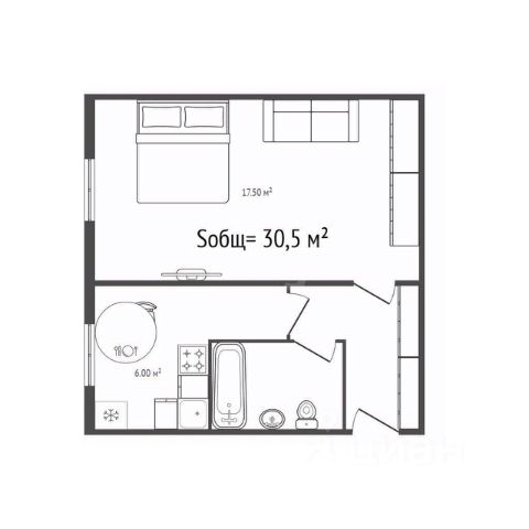 - Общая площадь 30.5 м2