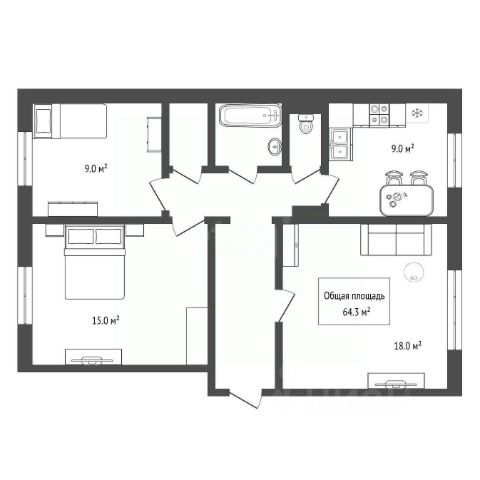 - Общая площадь: 64.3 м2
