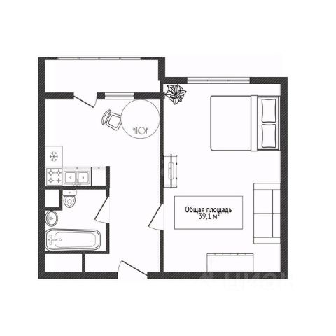 - Общая площадь 39.1 м2