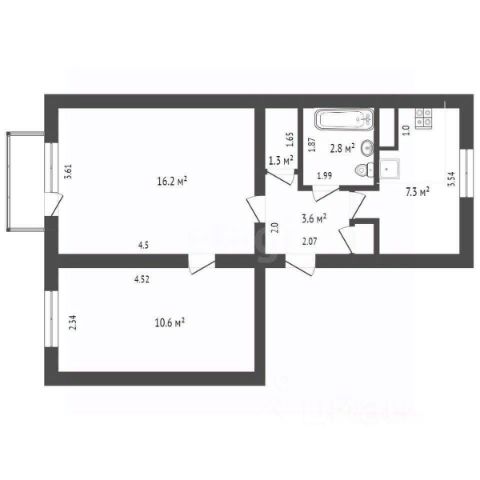 - Общая площадь: 44.5 м2