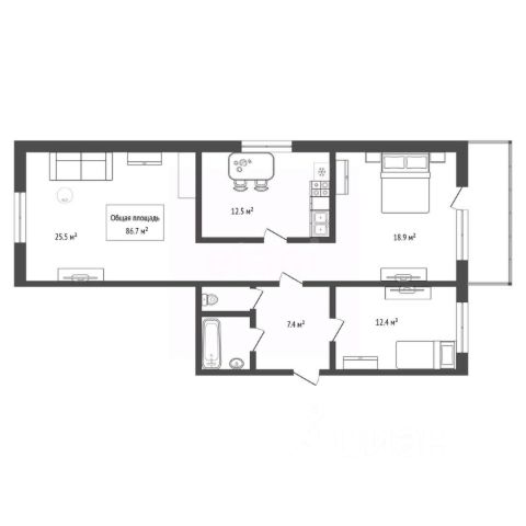 - Общая площадь 86.7 м2