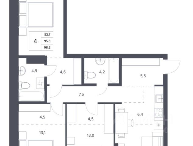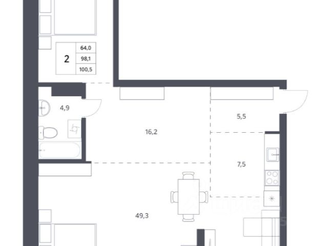 - Общая площадь: 100.5 м2