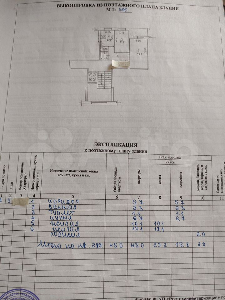 - Общая площадь: 43 м2