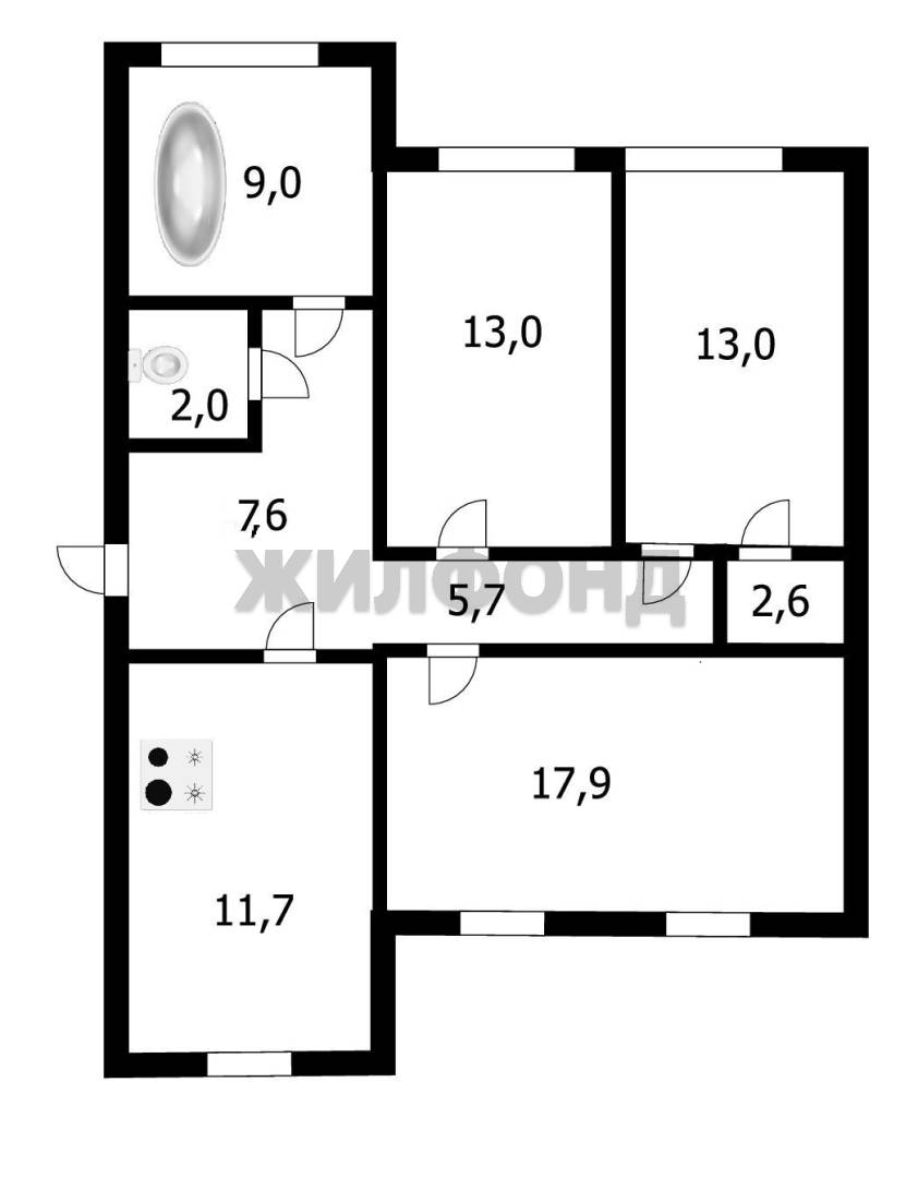 - Площадь кухни: 11.7 м2