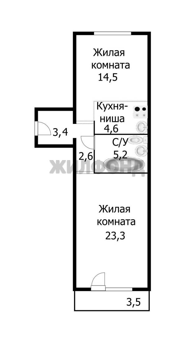 - Площадь кухни: 4.6 м2