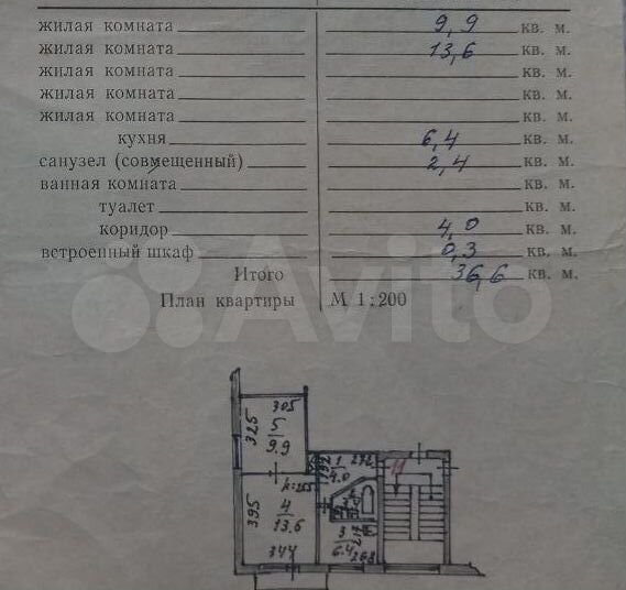 - Общая площадь: 36.6 м2