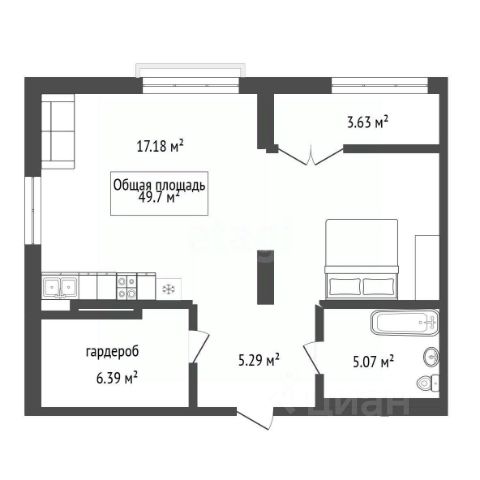 - Общая площадь 49.7 м2