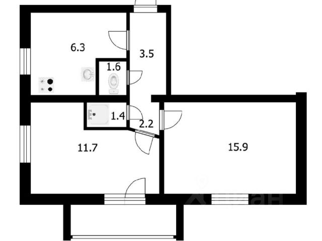 - Общая площадь: 43 м2